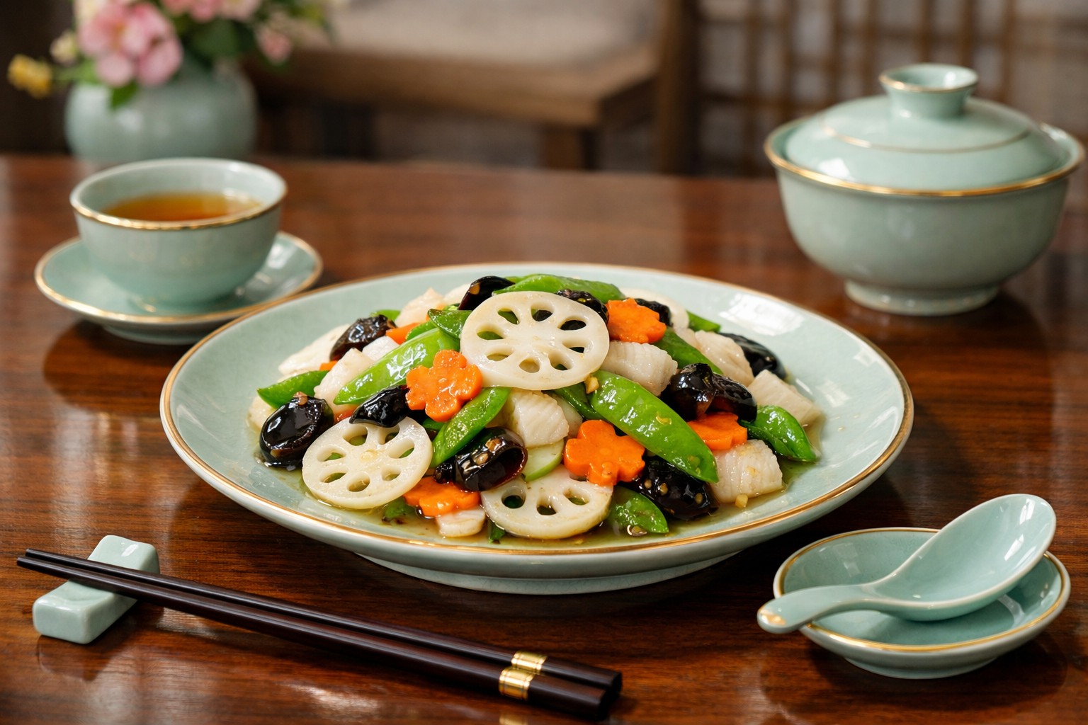 Weekly Buddhist Diet: Lotus Garden Stir-Fry The first week of February 2026 Summary: Lotus Garden Stir-Fry is a light and colorful vegetarian dish centered on crisp lotus root, complemented by carrots, snow peas, and wood ear mushrooms. The lotus root retains its crunchy texture after quick stir-frying, while carrots add natural sweetness and vibrant color….