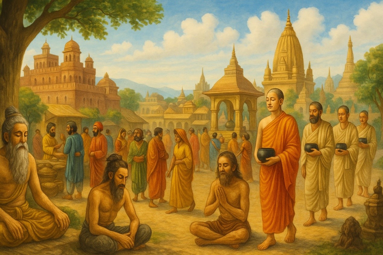 印度是一個文化古國,在思想界方面極其發達。三千年前印度的思想界,正如我國春秋戰國時代,雖是非常發達,但又陷入十分混亂的狀態。因為,婆羅門教把讚頌和儀式認做是一種專有的東西,把文句定得十分詳密,義理說得十分幽玄,形成一種繁瑣的神秘作風。他們處處稱天意做事,任何事件都含著秘密。人民的智識總是要發展的,所以很容易引起脫離神話,走向理智去探索。後來有自然派的哲學興起,就宇宙物質方面加以說明的,如地論、水論、火論等;另有一派就宇宙抽象觀念方面加以說明的,如時論、方論、虛空論等。各種思潮紛紛起來,複雜到極點,一般人更是給搞得混淆不清。在這個時候,很需要宇宙的究竟真理指出人生應行的大道;很需要有一種圓滿的革新宗教。佛陀生在這個時候,像一粒定水珠一樣,把猶如一塘混濁之水的印度思想界澄清,指示徘徊在歧途上的人們一條應行的大道…